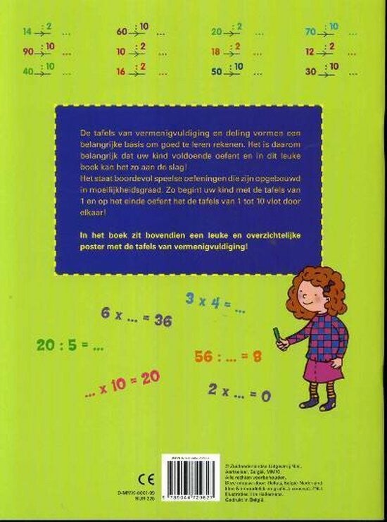 De tafels van vermenigvuldiging en deling vormen een belangrijke basis om goed te leren rekenen. Het is daarom belangrijk dat uw kind voldoende oefent en in dit leuke boek kan het zo aan de slag! Het staat boordevol speelse oefeningen die zijn opgebouwd in moeilijkheidsgraad. Zo begint uw kind met de tafels van 1 en op het einde oefent het de tafels van 1 tot 10 vlot door elkaar! In het boek zit bovendien een leuke en overzichtelijke poster met de tafels van vermenigvuldiging!