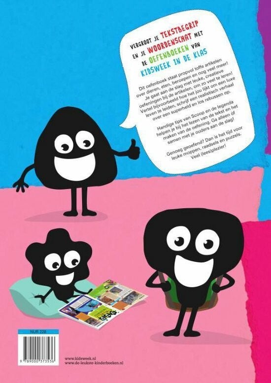 Leren saai? Welnee! De oefenboeken van Kidsweek in de Klas zijn niet alleen leerzaam, maar vooral ook heel leuk. Aan de hand van de artikelen uit Kidsweek en de bijbehorende video’s op de website vergroot je je woordenschat en je tekstbegrip, alleen of samen met je juf of je ouders. Daarnaast leer je spelenderwijs van alles over de actualiteit én leer je ook allerlei handige studievaardigheden aan. Heb je even genoeg geoefend? Blader dan door naar de puzzels of de moppen. Zo wordt je woordenschat uitbreiden vanzelf een feest!