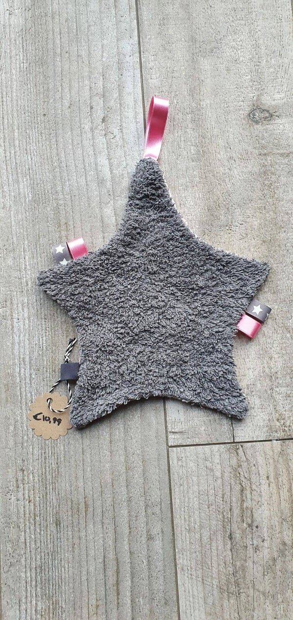 BY CHANTI Speen/knuffel doekje - voor roze, achter grijze badstof